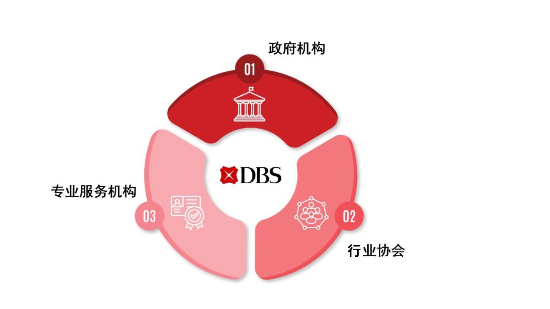 星展银行与政府机构、行业协会以及专业服务提供商等活跃的生态系统伙伴紧密合作,包括律师事务所、审计公司、人力资源管理公司和秘书公司。这个广泛的网络使我们能够提供最佳的专业知识,并通过提供整合和定制化的解决方案,充分发挥我们合作伙伴的专业能力,从而最大限度地发挥我们客户的潜力。