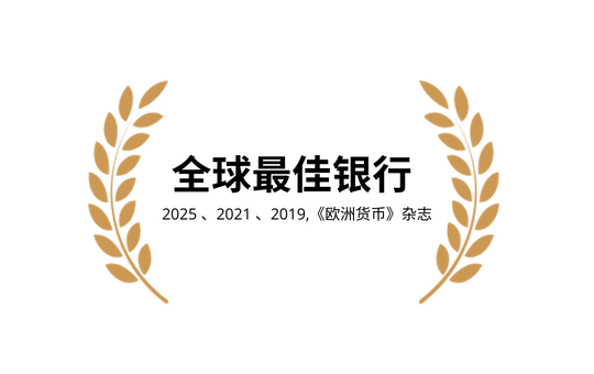 | 全球最佳银行 2025, 2021, 2019 全球最佳企业责任银行 2025, 2023 香港最佳国际银行 2022 – 2024 香港最佳交易银行 2025 | 亚洲最安全银行 2009 – 2025 亚太区最佳交易银行 2025 亚太区最佳可持续金融银行 2025 亚太区最佳金融机构银行 2025 香港最佳企业 / 机构数码银行 2025 | 亚太区最佳ESG交易银行 2025 亚太最佳项目融资咨询 2025, 2021, 2019 最佳在线客户引导体验奖 – 香港 2026 |