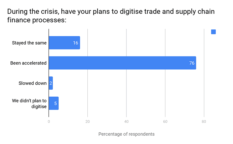 More than three-quarters of companies have accelerated plans to digitise trade and supply chain finance processes, according to a poll of participants in the latest SCF Community webinar, sponsored by DBS Bank.
