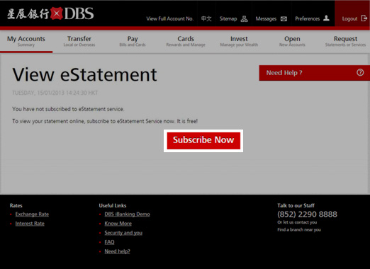 Click “Subscribe Now” to apply for DBS eStatement service