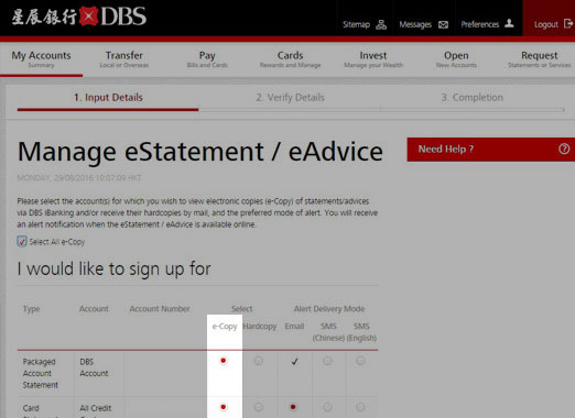 Select “e-Copy” under “Manage eStatement/eAdvice”