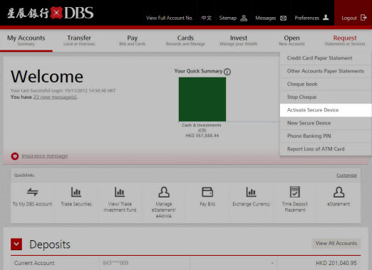 When you have successfully activated your Secure Device, you will be presented with the details of your transactions.