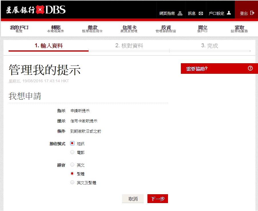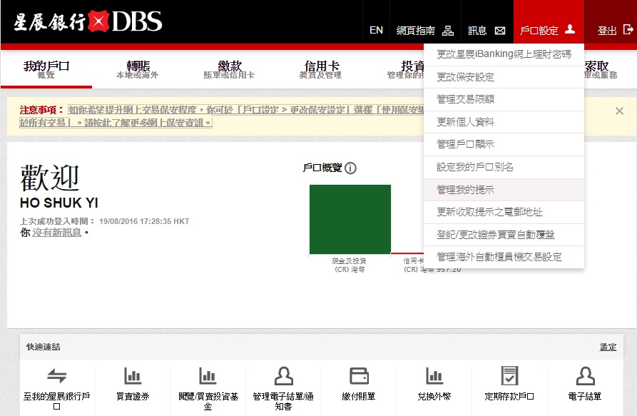 1. 登入星展iBanking網上理財(網址:go.dbs.com/hk-ib)