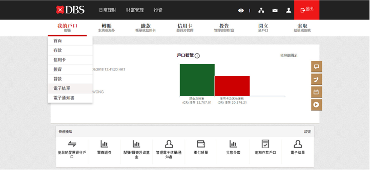 信用卡客戶、Cashline貸款戶口客戶、儲蓄及往來戶口及/或財富管理戶口客戶於收取紙張結單的同時,亦會於星展iBanking網上理財/DBS digibank HK收取電子結單。