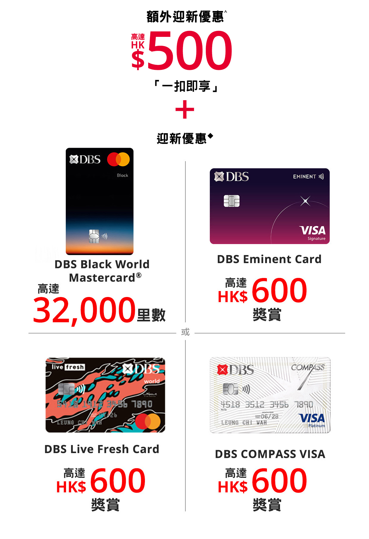 ◆ 有關指定DBS信用卡的迎新優惠須受有關條款及細則約束,詳情請按此瀏覽。