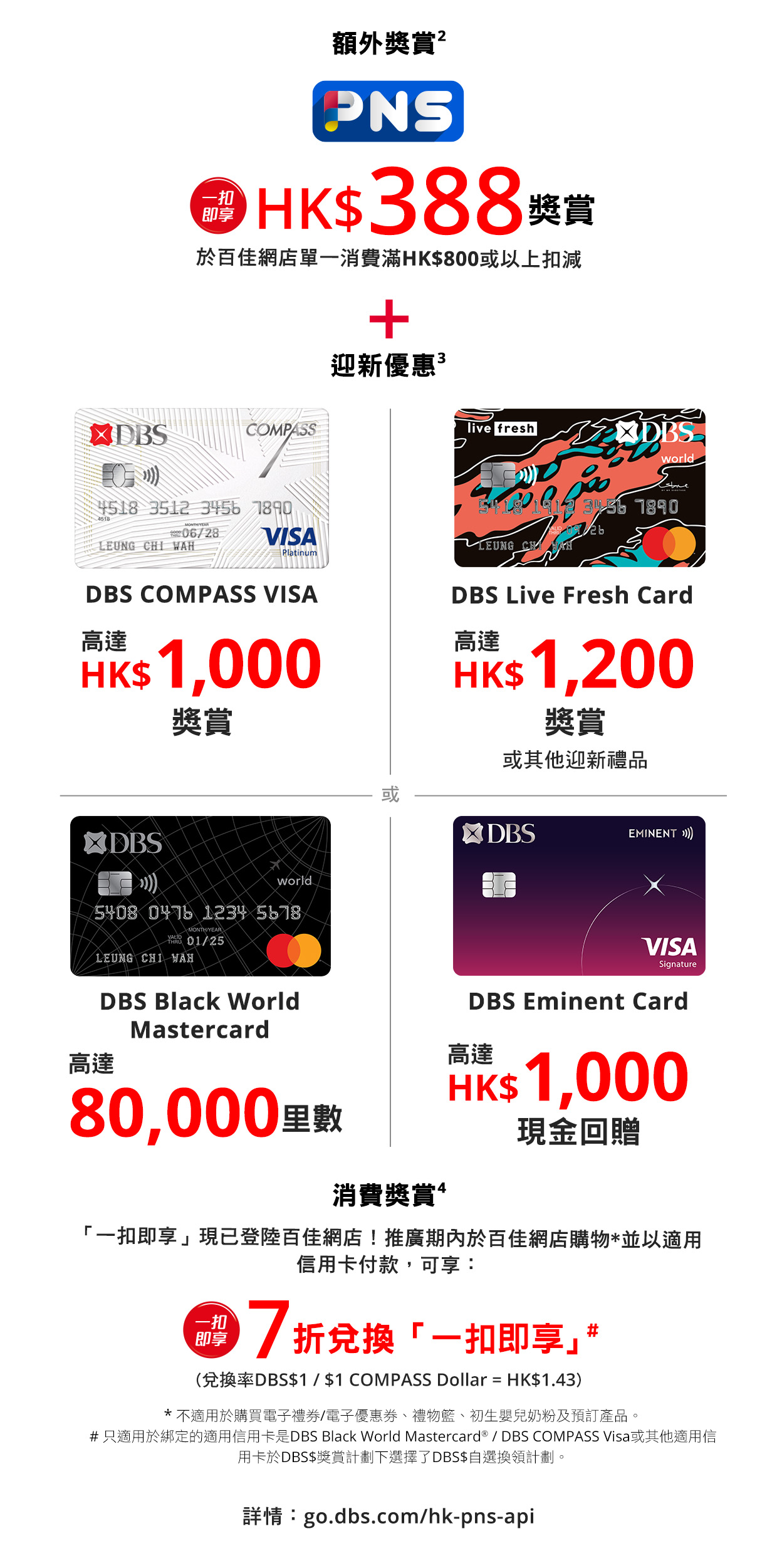 4. 消費獎賞須受有關條款及細則約束,詳情請瀏覽go.dbs.com/hk-pns-api。