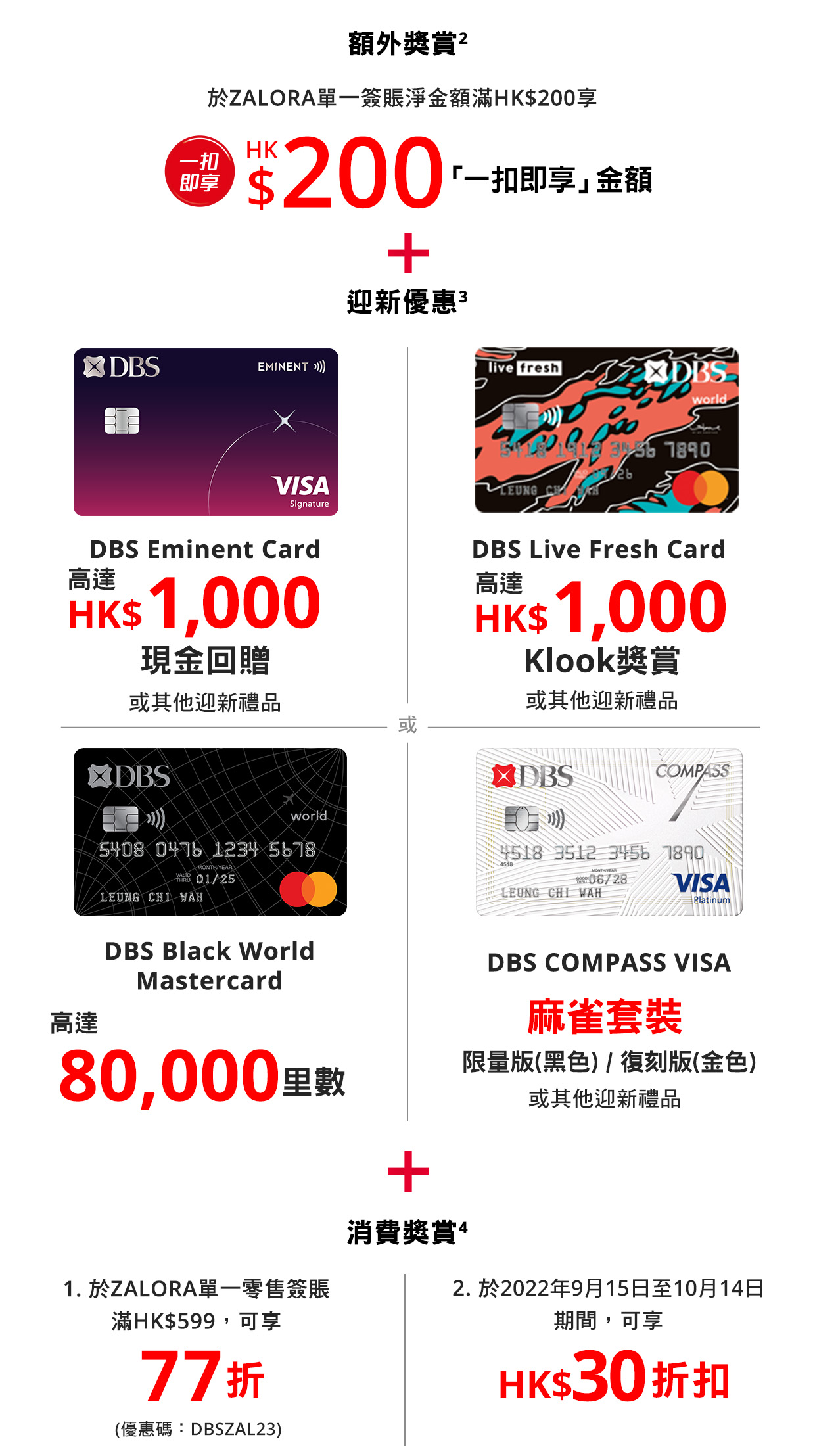 2. DBS信用卡ZALORA額外迎新優惠須受條款及細則約束,請按此瀏覽。