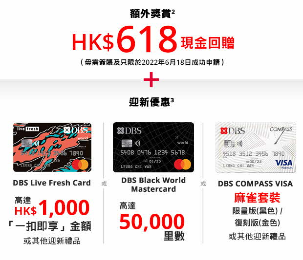 2. 有關DBS信用卡618額外迎新優惠推廣詳情與條款及細則,請按此瀏覽。