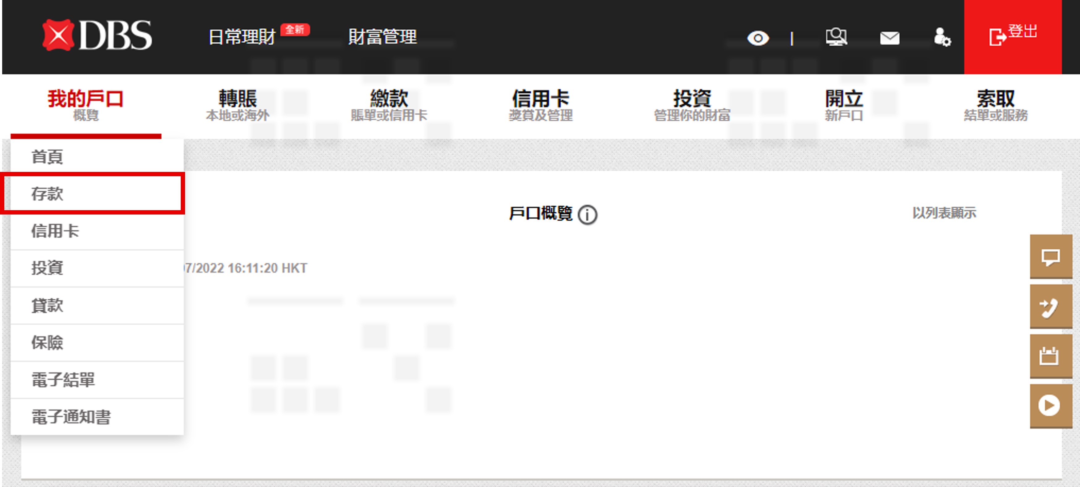 1. 登入iBanking網上理財於[我的戶口]內揀選[存款]: