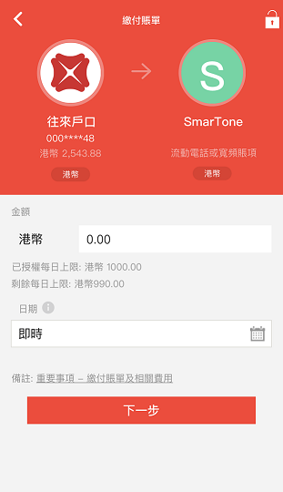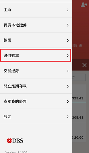 如何使用DBS digibank HK流動理財繳付賬單 你可直接繳費予已登記或未登記的收款人。 透過DBS digibank HK繳付賬單 登入並前往繳款及轉賬 > 繳付賬單 點按 > 「其他賬單」以新增賬單,並輸入賬單資料。如你已儲存賬單,可直接點按以付款 選擇支賬戶口 輸入金額及選擇繳款日期^ 核對資料後,點按「立即提交」 ^請於付款日期前1個工作日提交有關指示。請按此了解詳情。 相關資料 甚麽是 DBS digibank HK? 透過DBS digibank HK流動理財修改收款人詳情 透過DBS digibank HK流動理財更改或刪除已預設繳款 我們歡迎您的意見 以上資料是否容易明白及尋找? 是 否 以上資料能夠充份解答您的問題? 是 否 請給予我們意見以作改善 多謝您的寶貴意見 需要其他協助? 請與我們聯絡,我們會提供協助。 聯絡我們