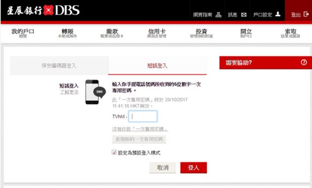 3. 輸入你手提電話收到的6位數字一次專用密碼: