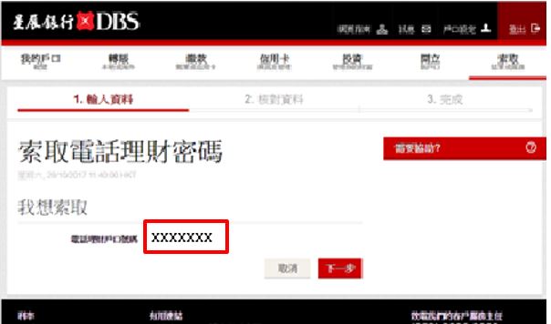 請遵照以下步驟取回電話理財戶口號碼/索取電話理財密碼: