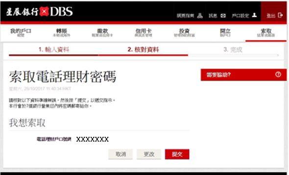 5. 確認及提交電話理財密碼索取申請. 本行會於7個銀行營業日內將密碼郵寄給你: