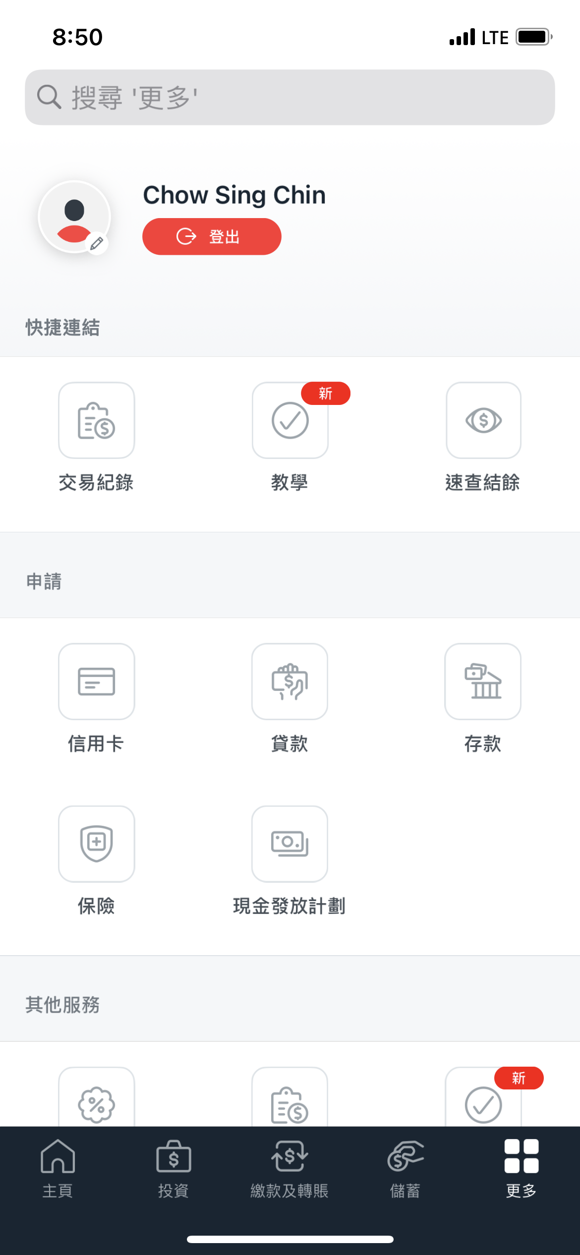 1. 登入後,點選「更多」,然後選擇「速查結餘」。