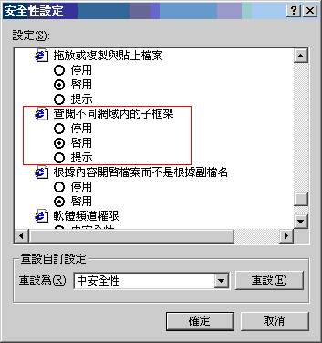 4. 於「查閱不同網域內的子框架」選擇「啟用」,然後按「確定」