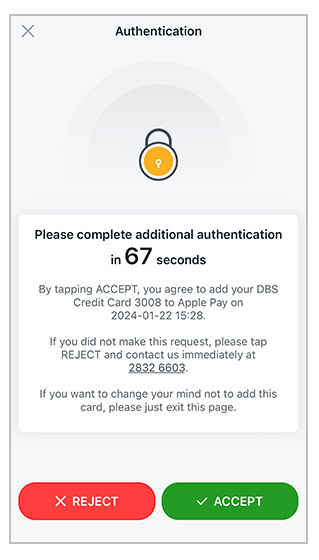Step 3:You will receive push notification from DBS Card+ app or SMS to complete authentication.