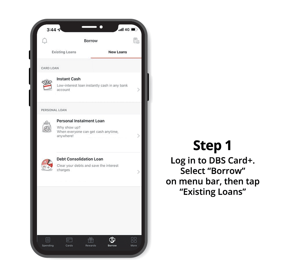 *To use this function, you are required to install DBS Card+ mobile application (“DBS Card+”), register for and activate a DBS Card+ account. You are able to check the existing loan accounts and loan accounts closed within 90 days.