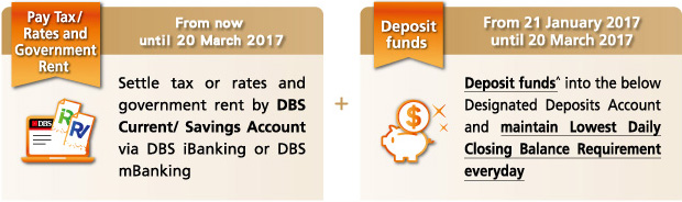 2. You can use any of the DBS Current/ Savings Account under your name to settle tax bills or rates and government rent via the online platform while deposit funds into the designated account!