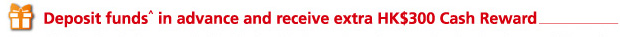 ^It may take time to make a deposit. Customer is advised to deposit funds 2 workings day prior to 1 January, 2017 (applicable to the extra HK$300 cash reward) or 21 January 2017.