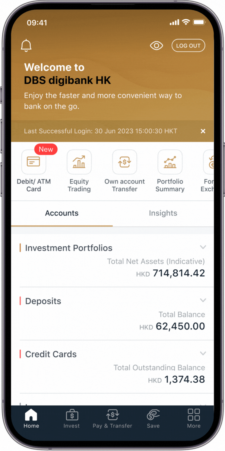 Simply apply via DBS digibank HK. Your application will be handled instantly wherever you are.
