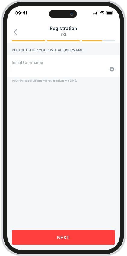 If you submit the iBanking application form to RM, you will receive an SMS with Initial Username. Input your Initial Username for registration.