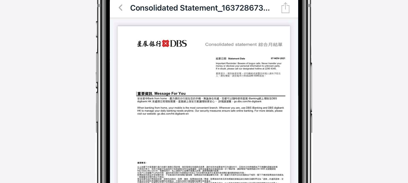 Our bank has strict security standards and procedures to ensure unauthorised access to customer information is prevented. We will never ask our customers to provide or validate their personal and/or account related information (e.g. ID number, passwords or account number) by e-mails or through any hyperlinks embedded in such e-mails. You are advised only to contact us through our official web-site domain address (www.dbs.com/hk) and not to use any such e-mails or hyperlinks. Please report immediately to us on 2290 8888 if you receive any such e-mail.