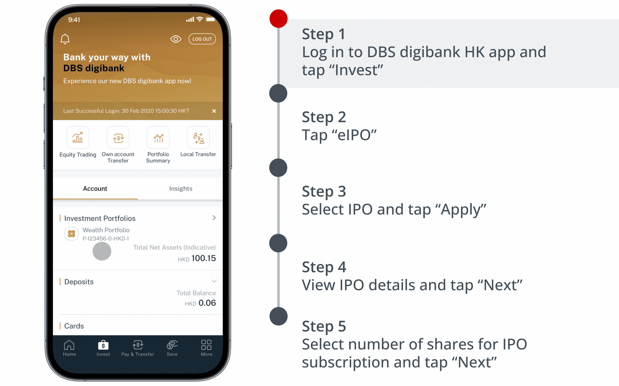 Wealth Management Account clients can subscribe to Hong Kong IPO via DBS iBanking or DBS digibank HK.