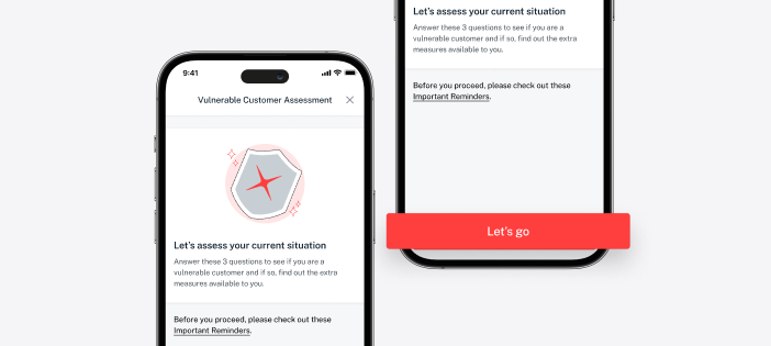 | 3. | Tap <Let’s go> or <Update assessment> to start your Vulnerable Customer Assessment. |