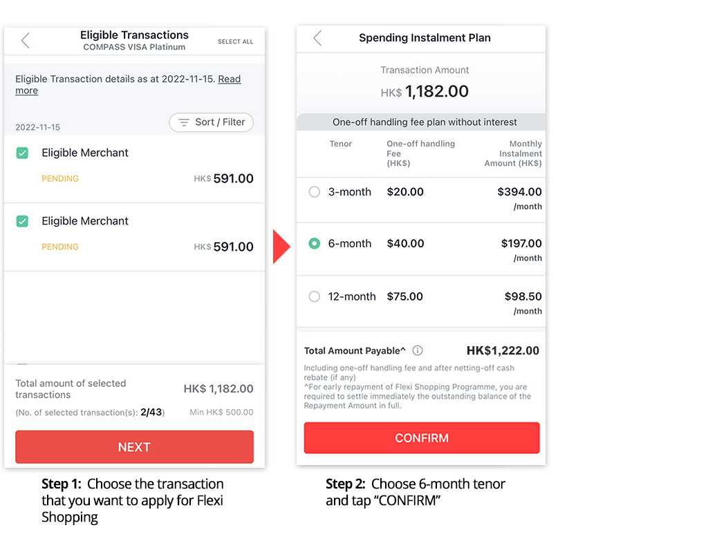 Enjoy up to HK$110 one-off handling fee or interest fee rebate of Flexi Shopping 6 to 60-month instalments #