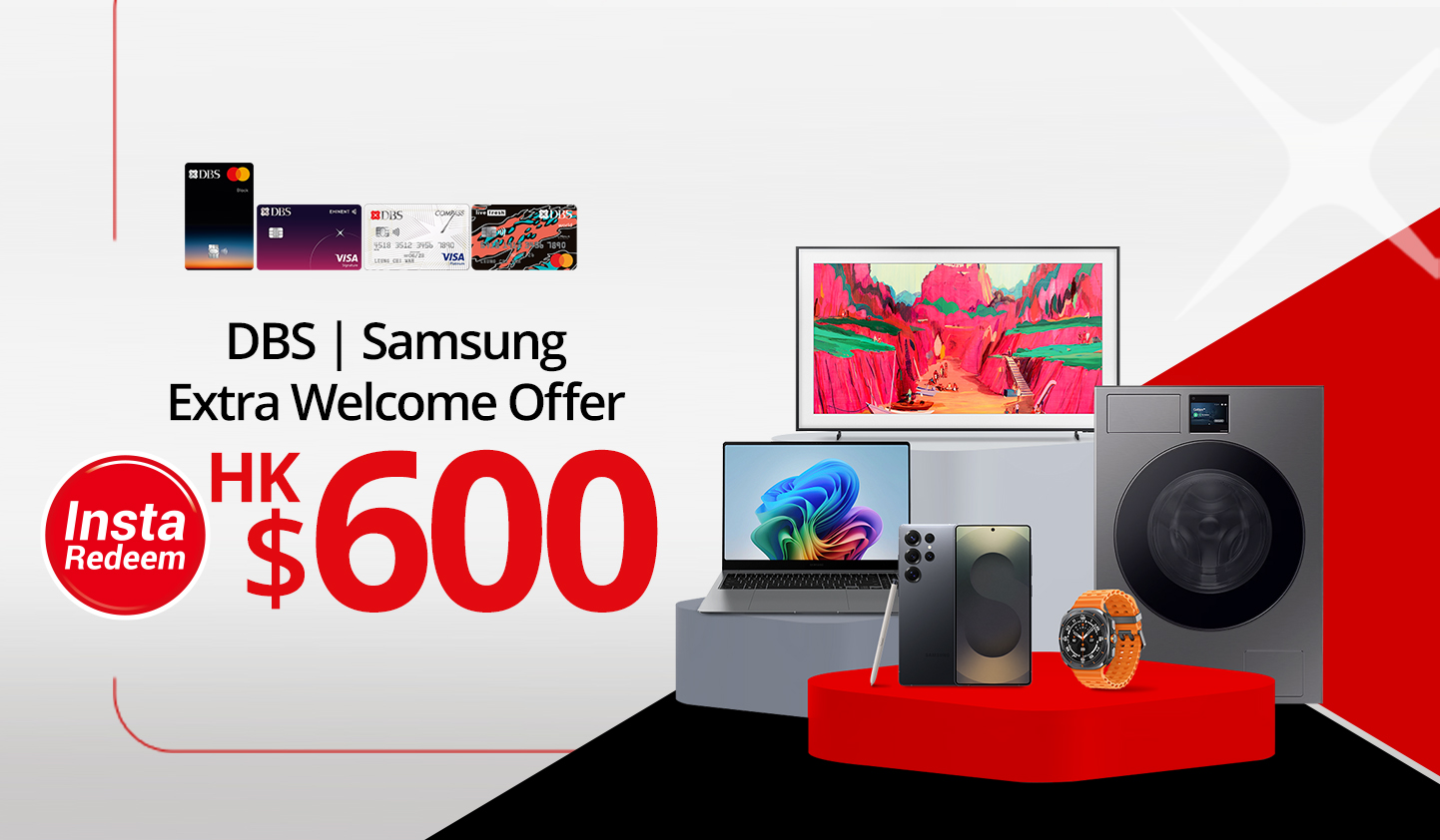 ^ DBS Credit Card x Samsung Extra Welcome Offer of HK$600 InstaRedeem Promotion is subject to Terms and Conditions, please click here for details.
