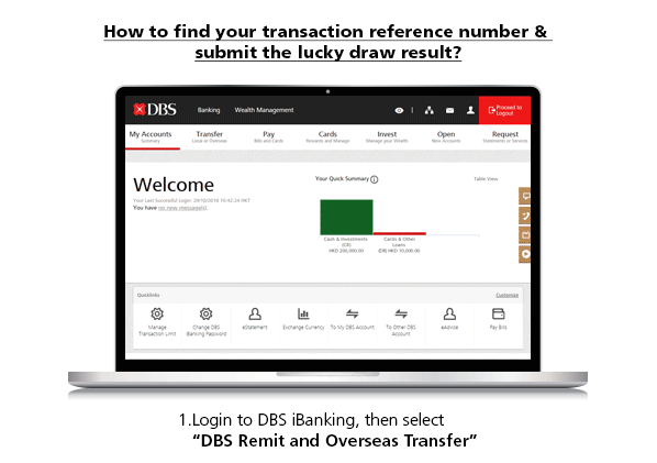 Log in online via DBS iBanking to remit now!