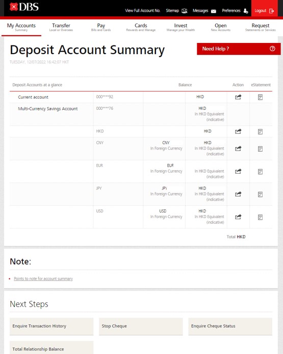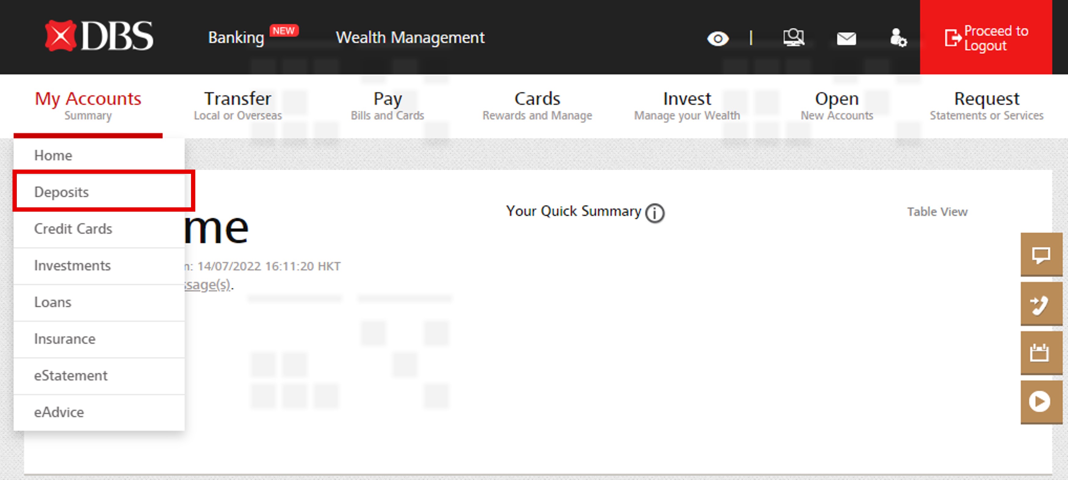 1. Login iBanking and choose "Deposit" under "My Accounts":