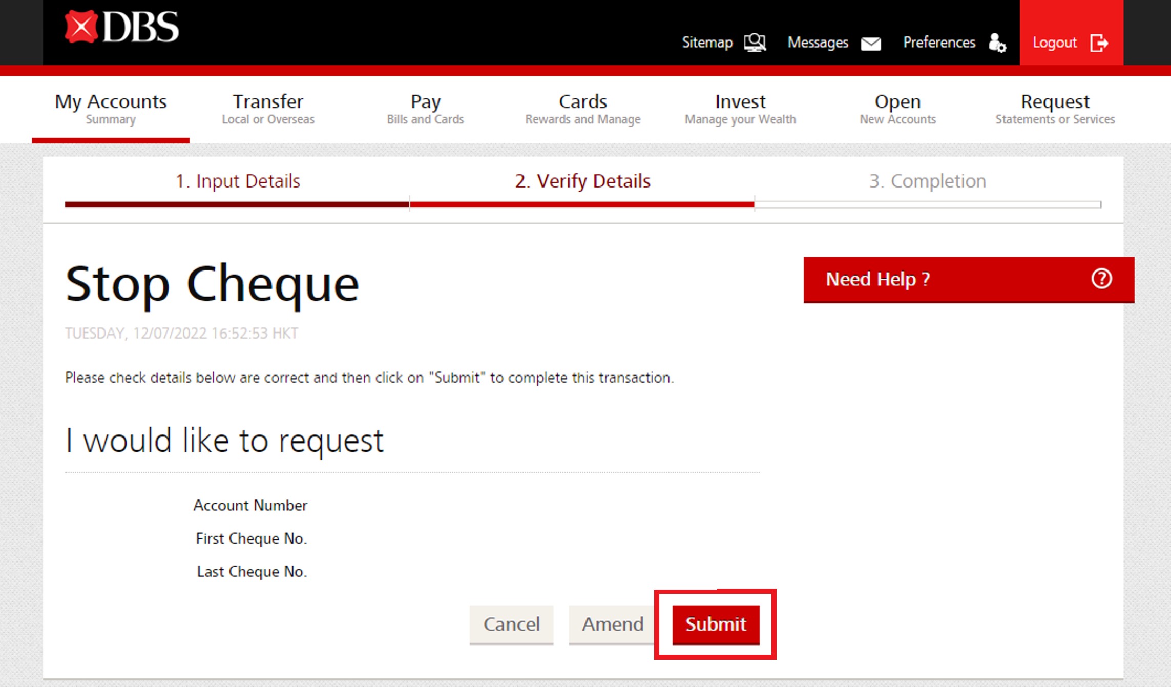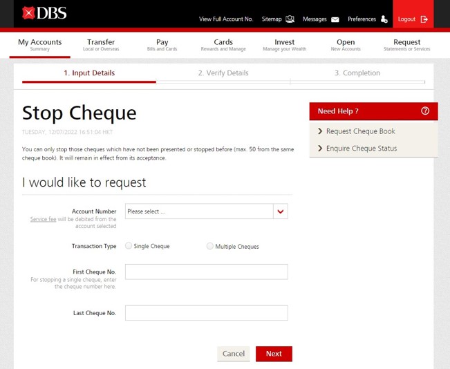 You can submit your request of Stopping Cheque Payment Through iBanking