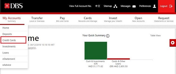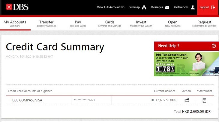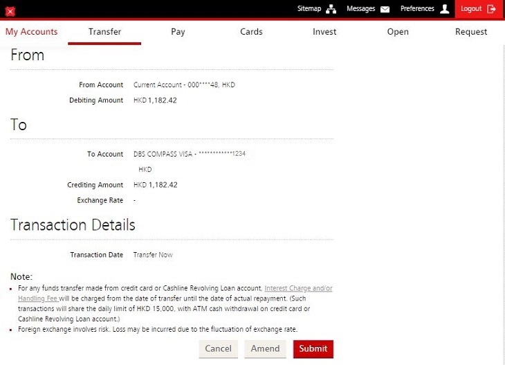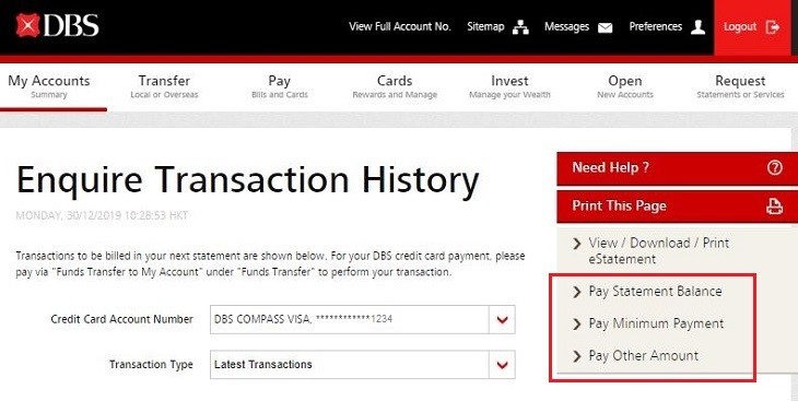Then you can choose to settle your statement balance, minimum payment of your current statement or another amount from your DBS bank account to credit card account