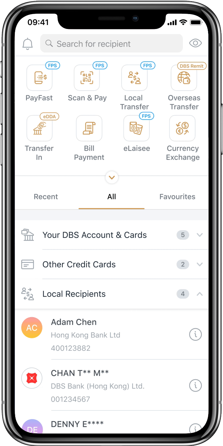 - Log in to DBS digibank HK and select "Pay & Transfer" > "All" to view the registered recipient list