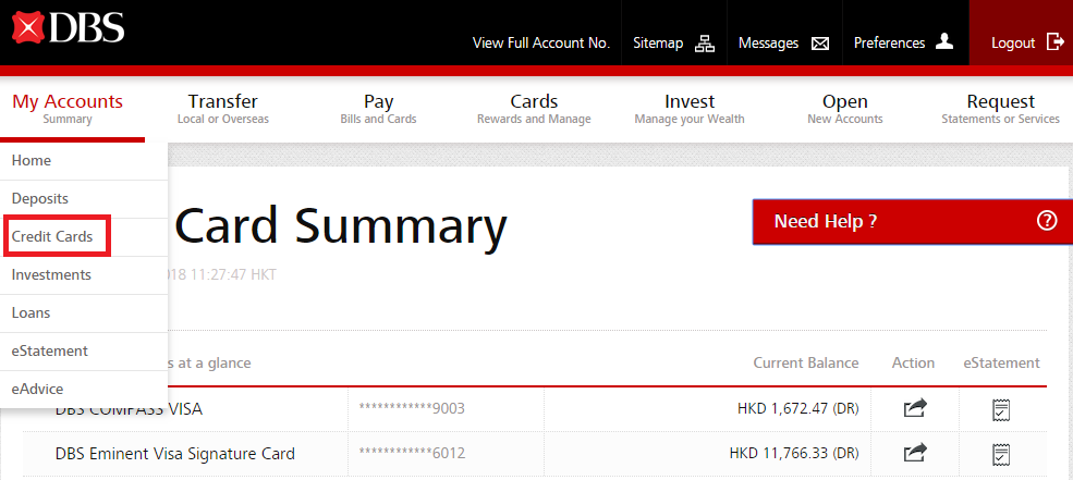 - Login iBanking and select "Credit Cards" under "My Accounts"