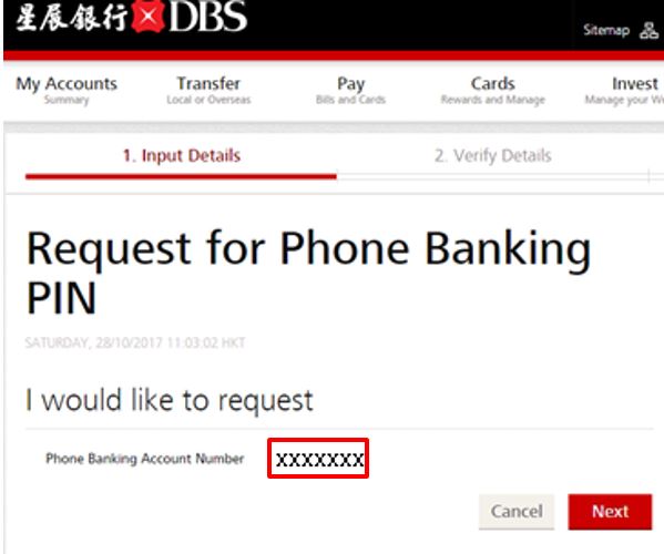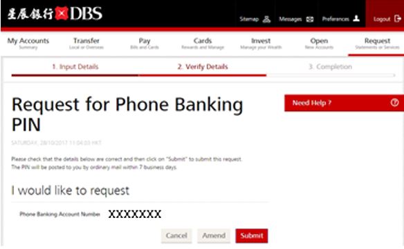 5. Confirm and Submit for requesting the Phone Banking Pin. The Pin will be posted to you by ordinary mail in 7 business days: