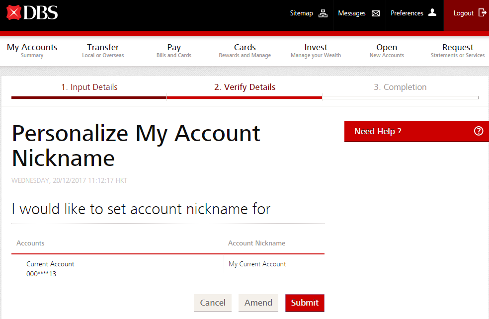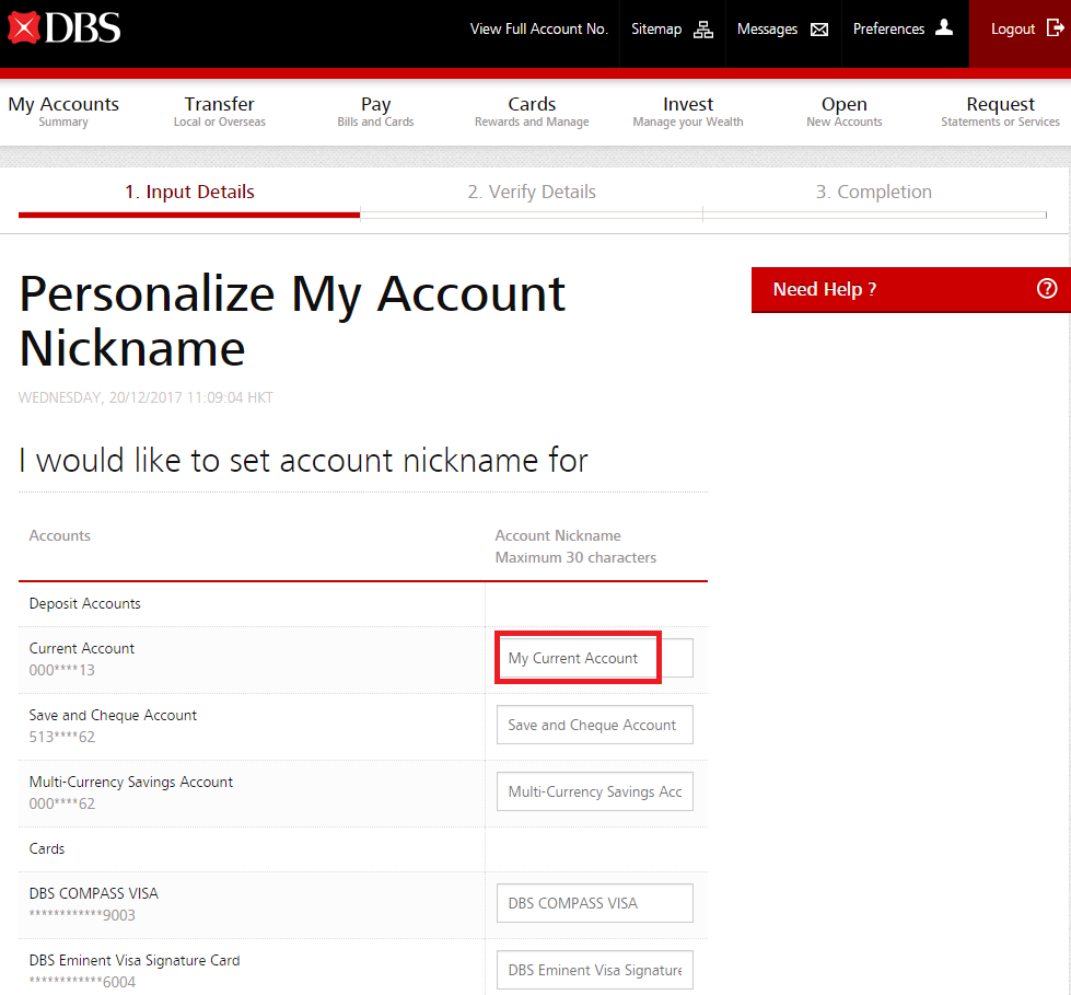 You may personalize your account nickname through DBS iBanking for your easy reference