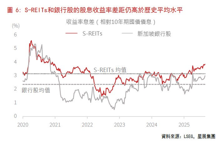 在東盟市場中,星展集團看好的行業包括新加坡房地產投資信託基金(S-REITs)和新加坡的銀行股。維持SREIT積極看法的主要原因是該行業將得到租金正向調整和利率下行的雙重支撐,為其2025年四季度的每單位派息(DPU)增長奠定基礎。可分配收入應可超過淨物業收入(NPI),這反映出融資成本下降帶來的利好因素正日益增強。儘管S-REITs已經隨著新幣隔夜利率(SORA)走低而有所上升,但其估值仍然不高,股息收益率仍具吸引力。儘管利率下行已開始對銀行的淨息差(NIM)造成壓力,但該行業約5%的股息收益率(遠高於當地債券收益率)兼具吸引力和可持續性,為股價提供了強勁的支撐。此外,財富管理和資金相關業務手續費收入的增加也為銀行業提供額外支撐。重要的是,新加坡銀行和S-REIT的股息收益率息差仍高於歷史均值,進一步凸顯相對投資價值。在其他領域,資產價值釋放相關的特殊投資機會,以及新加坡股票市場發展計畫(EQDP)的受惠者,均提供了豐富的大型股和中型股的選擇空間。