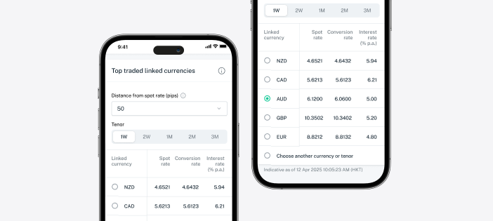 *An FX instruction placed within Wealth Management Accounts or within Multi-Currency Savings Accounts before the relevant cut-off time will be processed instantly in general. However, the crediting of funds may vary depending on the cut-off time and local public holidays. For cross currency transactions between Wealth Management Accounts and Multi-Currency Savings Accounts, this will be subject to the service hours of 09:00-21:00, Monday to Friday. For more details, please refer to www.dbs.com.hk/ibanking-zh/ft-time1.html.
