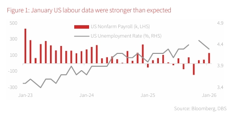 US/Japan: Firm US labour data dampens near-term Fed cut expectations; LDP lands landmark election victory. US nonfarm payrolls rebounded to 130k in January, doubling consensus expectations of 65k. The unemployment rate eased for a second month to 4.3% in January, from 4.4% in December and 4.5% in November. The data convinced Cleveland Fed President Beth Hammack that the stabilising labour market did not need additional rate cuts. Kansas Fed President Jeff Schmid wants the Fed to hold rates at a “somewhat restrictive” level because inflation remains above the 2% target. January’s headline and core CPI inflation are expected to converge at 2.5% y/y, down from 2.7% and 2.6% respectively in the previous month. Labour and CPI data are unlikely to alter the market’s belief that Warsh will deliver a rate cut at his first FOMC meeting as Fed Chair in June.