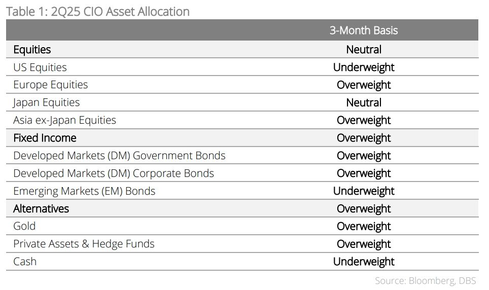 Navigating policy headwinds in Trump 2.0. We have advised investors to seek opportunities beyond S&P 500 amid policy uncertainties and early signs of moderation in the US macro momentum. On the flipside, just as “US exceptionalism” is facing severe headwinds, Europe is showing strong signs of resurgence with Germany’s “whatever it takes” moment signalling the rise of policy stimulus in Germany and other parts of Europe. Given the changing geopolitics and divergent valuations between the two markets, we are making the following tactical switches for our upcoming 2Q25 CIO asset allocation: