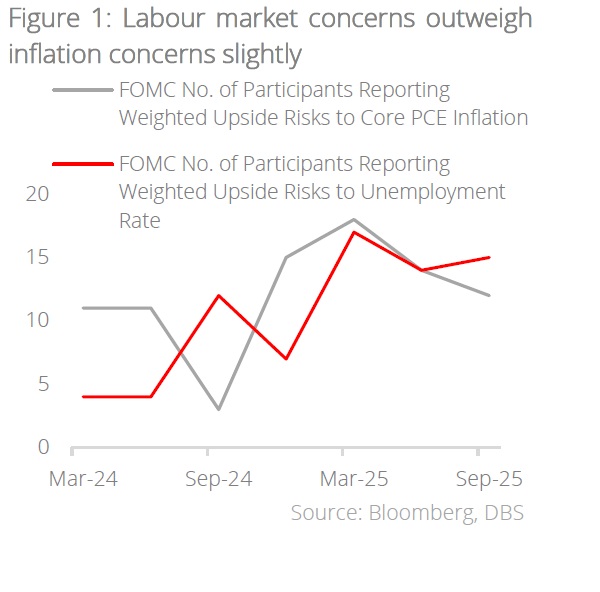 Fed inflation target: Still viable? The Fed has a long-held inflation target of 2%. But with the central bank cutting rates now when: (a) core PCE inflation is at 2.9% and (b) there is no US recession in sight, the next natural thing to ask is: Does the Fed inflation target still matter? Indeed, given limited clarity on the full downstream impact of the tariff war and OBBBA, the Fed’s enthusiasm in cutting rates runs the risk of committing a major policy error further down the road. Perhaps, the Fed may have decided that labour market concerns supersede inflation concerns at this juncture. But as the central bank’s economic projections data shows, these concerns are separated by a fine line and the narrative will evolve in tandem with changes in incoming macro data.