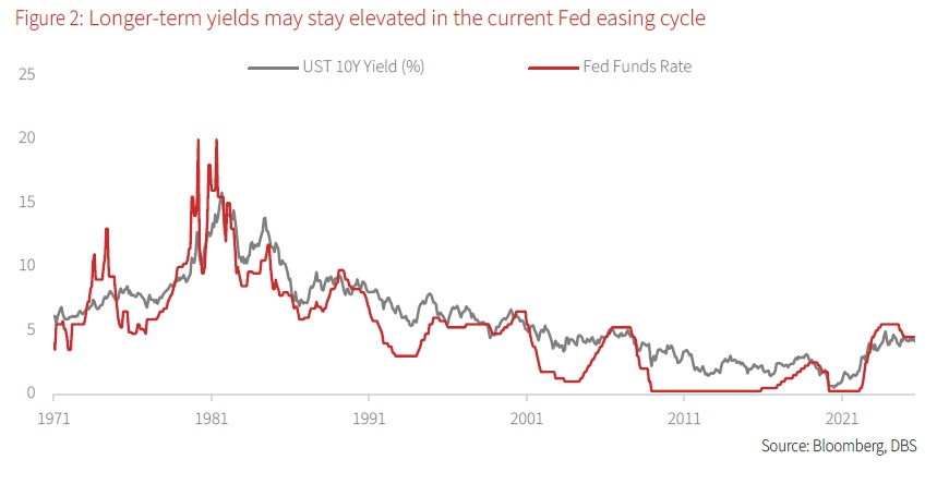 Rising concerns over US fiscal largesse and policy chaos have kept long-term yields elevated despite talks of impending rate cuts. Given limited success in cutting back on government spending, we expect these headwinds to linger for the foreseeable future. This, in turn, will keep longer-term bond yields elevated and dampen the effectiveness of Fed monetary easing, both on the economy and financial markets.