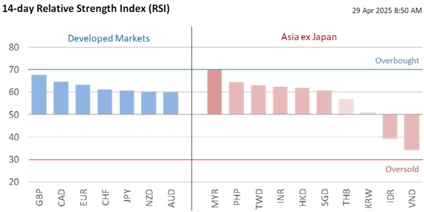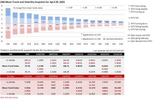 The DXY Index depreciated by 0.5% to 98.9 overnight after failing to push above 100 in the past three sessions. The Fed has entered a blackout period ahead of next week’s FOMC meeting. Expect US President Donald Trump to complain about Fed Chair Jerome Powell again when the committee maintains rates at 4.50% for the third consecutive meeting. Trump’s inability to refrain from interference was evident in his call for Canadians to vote for the ”51st State” during their federal election on April 28.