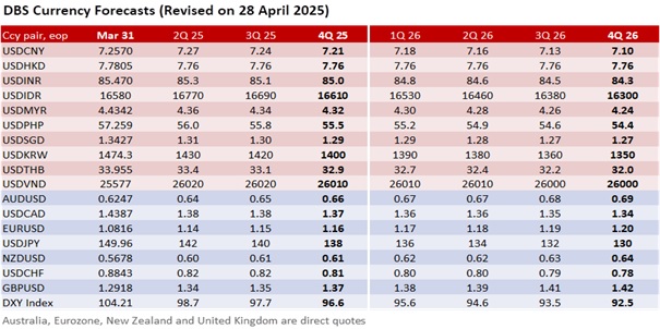 The expectation for today’s US Conference Board consumer confidence index to decline to 88 in April from 92.9 in February should align with the shocking stock market sell-off triggered by Trump’s tariffs. Expect consumers to worry more about emptying supermarket shelves raising prices and mortified businesses slowing investment and hiring plans. Friday’s nonfarm payrolls are expected to slow to 134k in April from 228k in March. However, consensus sees tomorrow’s PCE inflation slowing to 2.2% YoY in March from 2.5% in February, as businesses have not yet factored in the larger-than-expected tariffs announced on Liberation Day.