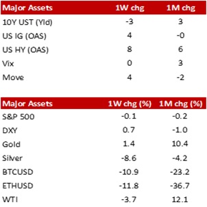 The rout in risk sentiment over the past week largely abated by Friday. By the end of the week, the S&P 500 was barely changed while gold closed slightly positive. Crypto currencies and silver took a larger hit but are well off their respective lows. The key takeaways from this episode are as follows. First, overstretched positioning can lead to a rapid unwinds and considerably volatility even if an asset is perceived to be safe. Second, this bout of volatility has likely shaken out a chunk of speculative longs. Third, US Treasuries proved their mettle in this bout of risk aversion, with yields declining as other assets sold off and yields rising as other assets recovered. Yields across the curve at current levels (2Y around 3.5% and 10Y around 4.2%) are sufficient for Treasuries to work as a risk-off hedge.
