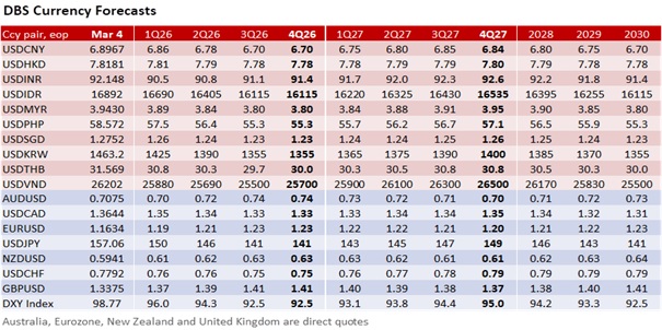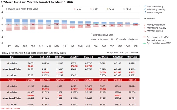 The DXY has retraced lower to below 99, amid hopes of a resolution to the current war between US and Iran. Iranian missile launch intensity has fallen sharply due to degradation from strikes, and media reports indicate that Iranian intelligence has signalled openness to talks to end the war. Iran has officially denied this, and a consequential decision could have to await the election of a Supreme Leader to replace Khamenei. Meanwhile, US and Israeli air superiority should lower, but not eliminate, risks of disruptions to energy production. Brent prices have stabilized at around USD82 after initially testing as high as USD85, while US equities have also recovered some of its Tuesday losses. US payrolls tomorrow may play second fiddle to geopolitical developments for the USD now.
