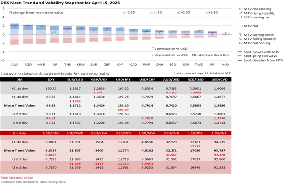 The DXY Index has surrendered more than 80% of its gains from the Iran conflict. The Index is down 1.8% this month to 98.1, approaching the 97.6 level before Operation Epic Fury began. The S&P 500 Index ended overnight above February 27’s 6878 level despite the IMF’s warning that a protracted Iran conflict could trigger a global recession. With Brent crude prices holding mostly below $100 per barrel the past week, markets have been holding out for a diplomatic solution, driven by President Donald Trump’s April 8 temporary ceasefire. Despite the failure of the first talks in Islamabad, Trump’s decision to blockade the Strait of Hormuz has strengthened the resolve of EU nations and China to push for a diplomatic solution.
