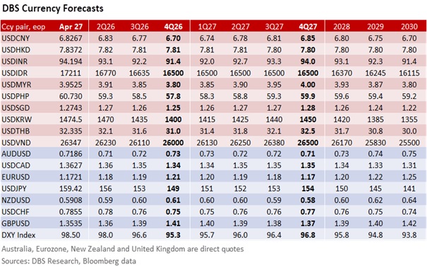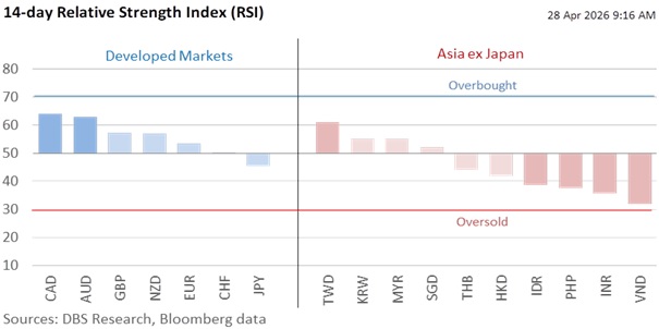 Commodity-driven currencies, AUD and NZD, led the risk-on rally, each appreciating 0.5% against the USD. The futures market is pricing in a 78.5% chance of a third consecutive rate hike at next week’s Reserve Bank of Australia meeting. As the highest-yielding G10 currency this year, the Oz has become the top currency with 7.7% YTD gains; the MYR was a distant second with 2.8% YTD gains. CAD appreciated less by 0.3% on expectations for the Bank of Canada to remain in a wait-and-see mode on war-driven inflation, with the OIS market looking at a later hike in 4Q26. The KOSPI stole the spotlight with a stellar 2.2% surge to a fresh record high of 6615, with the KRW appreciating a fourth consecutive session by 0.1% to 1474.53 per USD.
